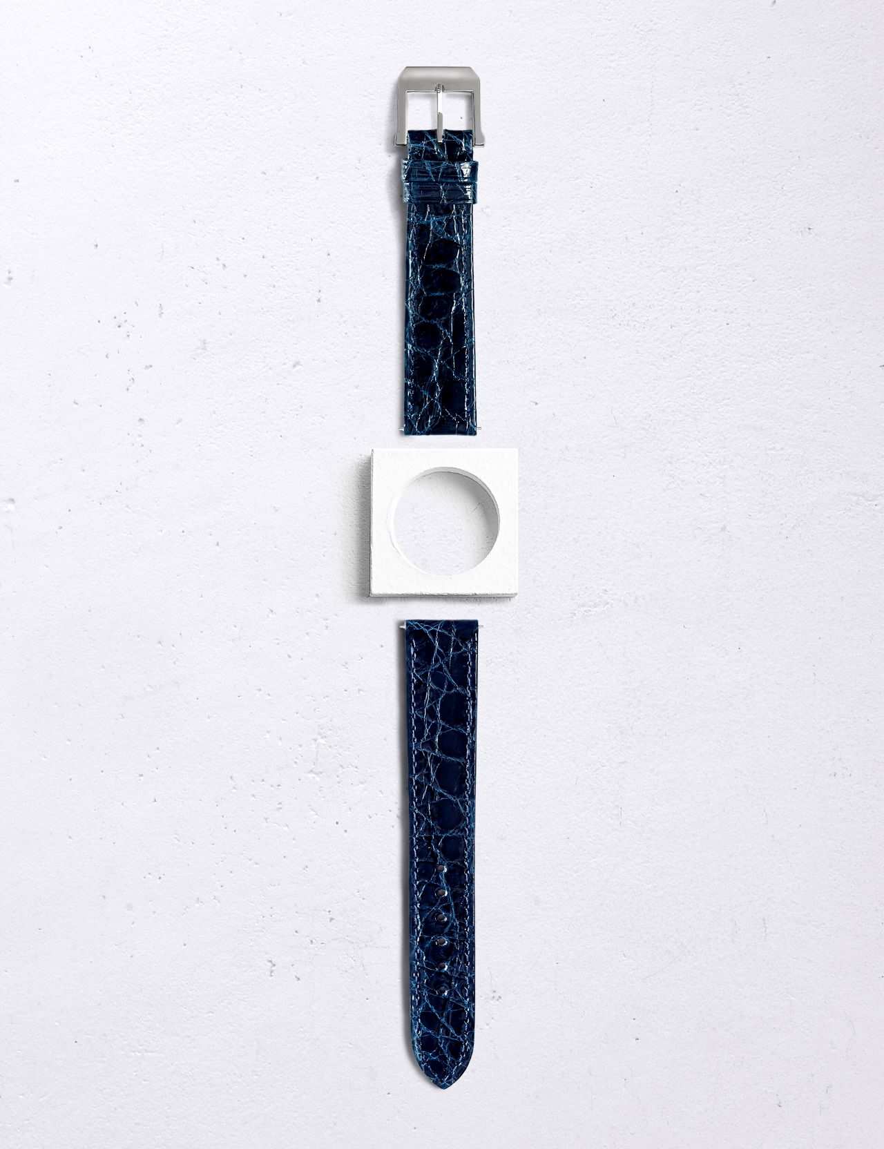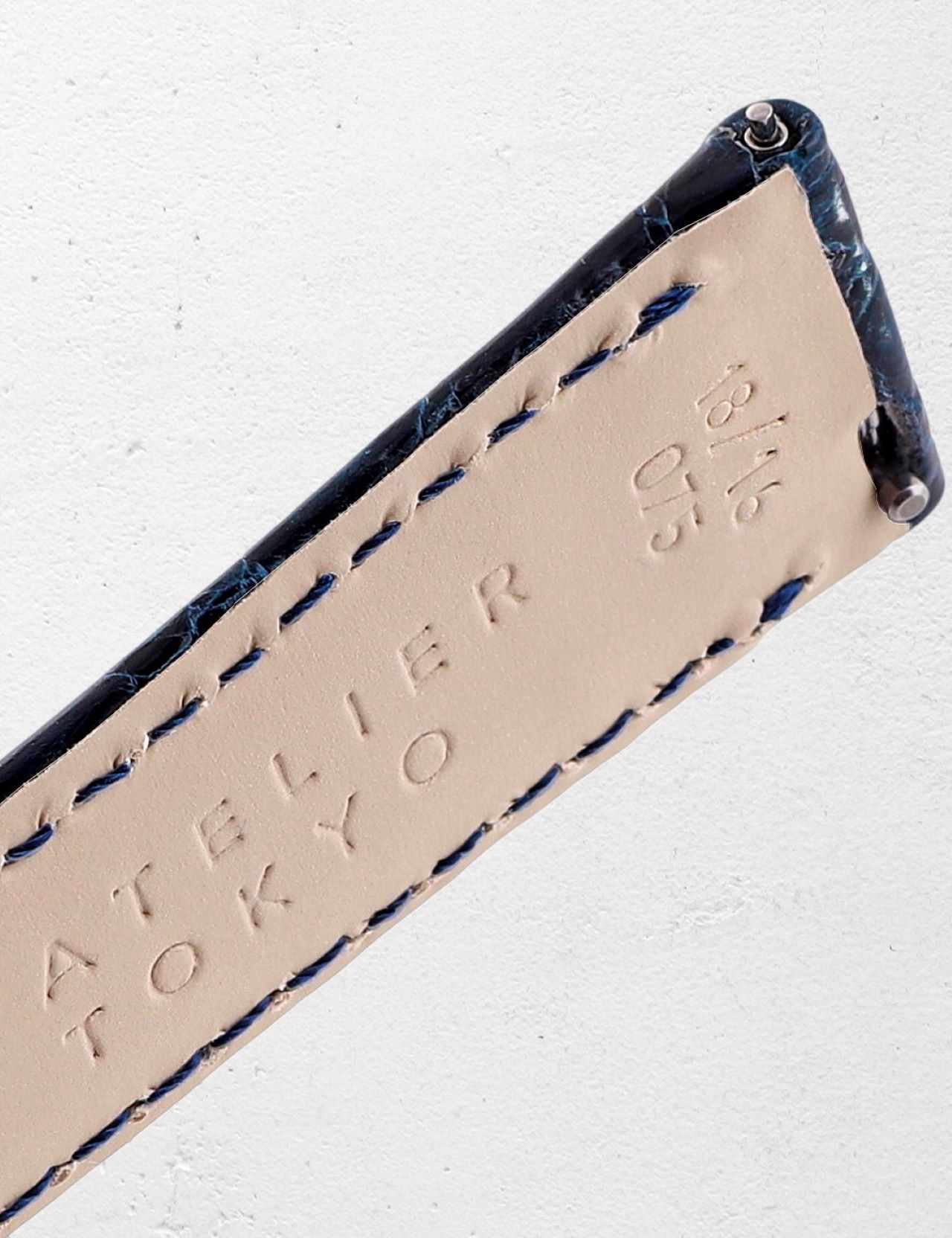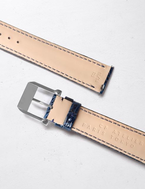 ヴィンテージ、アンティークの時計にマッチするこだわりの時計ベルト。 ケースがよりよく引き立つよう厚みは薄め。 美しいカイマンが横から見ても際立つよう、 側面も表素材で覆う上品で贅沢な仕様「へり返し」の時計ベルト。 ステッチは表裏どちらも同じカラーで裏材のベージュとのコントラストがポイント。 裏材はなめらかでさらりとした肌触りによる快適な付け心地が魅力的。 カーフ(仔牛革)に耐汗加工を施した「デラックス」を使用。 製作はATELIER TOKYOの職人。 フランスの職人と同じ技術力に繊細さを兼ね備えた職人が、 ひとつひとつ、丹精を込め製作。 取付部ストレ-トの時計に対応。 時計ベルトはワンタッチで時計に取り付けできるバネ棒「アビエ®」を装着。 バネ棒に小さなツメが付いており、工具を使わずにベルト交換が可能。 オンラインストアセレクション