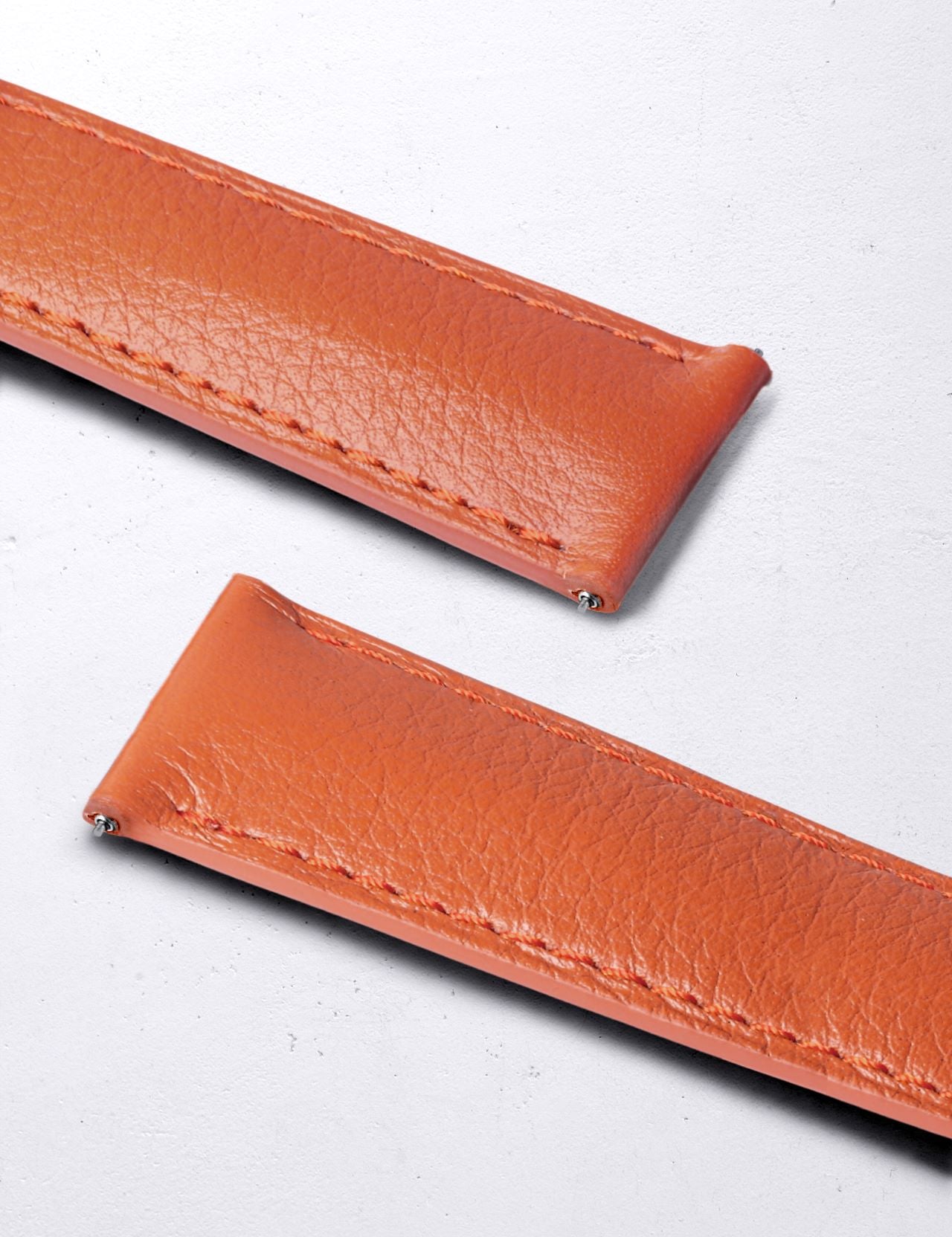 ヴォ-リスの時計ベルト。 取付部ストレ-トの時計に対応。 なめらかな絹のような表面と心地良い肌触りが最大の特徴。 裏には牛革にラバーコーティングした「アンチ・スウェット」モデルを採用。 汗が気になる季節はもちろん、通年でのご使用もおすすめ。 裏からの汗の浸透を防ぎベルトの傷みを軽減させるよう、表に縫い目を出さないひと工夫も。 時計への装着は小さな爪付きのバネ棒「アビエ®」をスライドさせてワンタッチで。 工具を使わずベルトの付け替えが可能。
