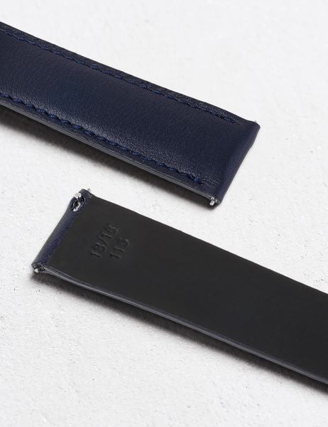 ヴォ-リスの時計ベルト。 取付部ストレ-トの時計に対応。 なめらかな絹のような表面と心地良い肌触りが最大の特徴。 裏には牛革にラバーコーティングした「アンチ・スウェット」モデルを採用。 汗が気になる季節はもちろん、通年でのご使用もおすすめ。 裏からの汗の浸透を防ぎベルトの傷みを軽減させるよう、表に縫い目を出さないひと工夫も。 時計への装着は小さな爪付きのバネ棒「アビエ®」をスライドさせてワンタッチで。 工具を使わずベルトの付け替えが可能。