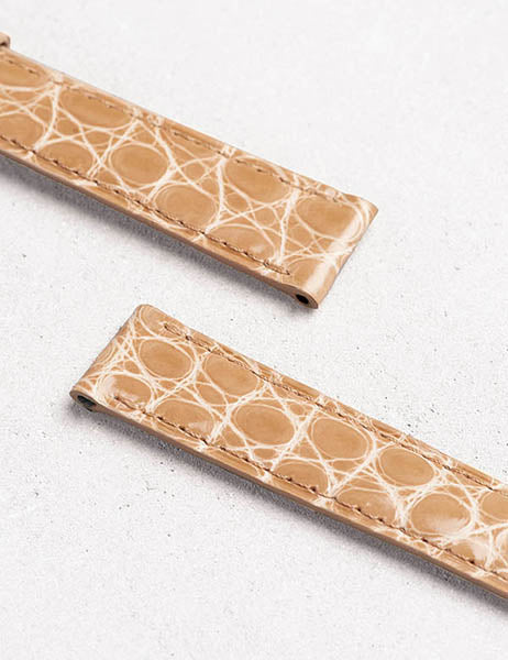 ミシシッピ・アリゲ-タ- シャイニー丸斑・ベージュの時計ベルト。