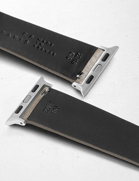 アップルウォッチストラップに日本限定素材「トリヨン」登場! ビジネス、カジュアルなど様々なシーンをワンランクアップさせるアップルウォッチ用ストラップ。 ワンタッチで時計に取り付けできる小さなツメ付きのバネ棒「アビエ®」を装着。 胴元幅22mmのカミーユ・フォルネの時計ベルトの付け替えも可能。 「トリヨン」は牛革の表面にシボ加工を施した柔らかく、傷がつきにくい耐久性の高い素材です。 裏には牛革にラバーコーティングした「カウチュ」アンチスウェットを採用。 汗が気になる季節はもちろん、通年でのご使用もおすすめ。 裏からの汗の浸透を防ぎベルトの傷みを軽減させるよう、表に縫い目を出さないひと工夫も。
