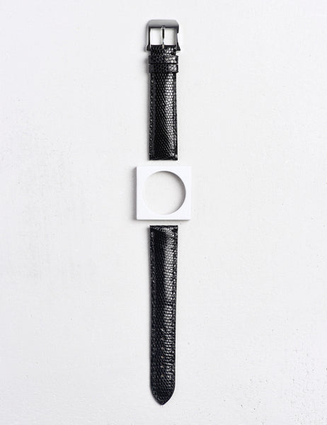 取付部ストレ-トの時計に対応。細かな紋様と華やかな発色が特徴のトカゲ革。