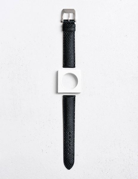 リザ-ドヌバックの時計ベルト。 取付部ストレ-トの時計に対応。 リザード素材にヌバック加工を施し、ベルベットのような起毛が特徴。 裏には牛革にラバーコーティングした「アンチ・スウェット」モデルを採用。 汗が気になる季節はもちろん、通年でのご使用もおすすめ。 裏からの汗の浸透を防ぎベルトの傷みを軽減させるよう、表に縫い目を出さないひと工夫も。 時計への装着は小さな爪付きのバネ棒「アビエ」をスライドさせてワンタッチで。 工具を使わずベルトの付け替えが可能。