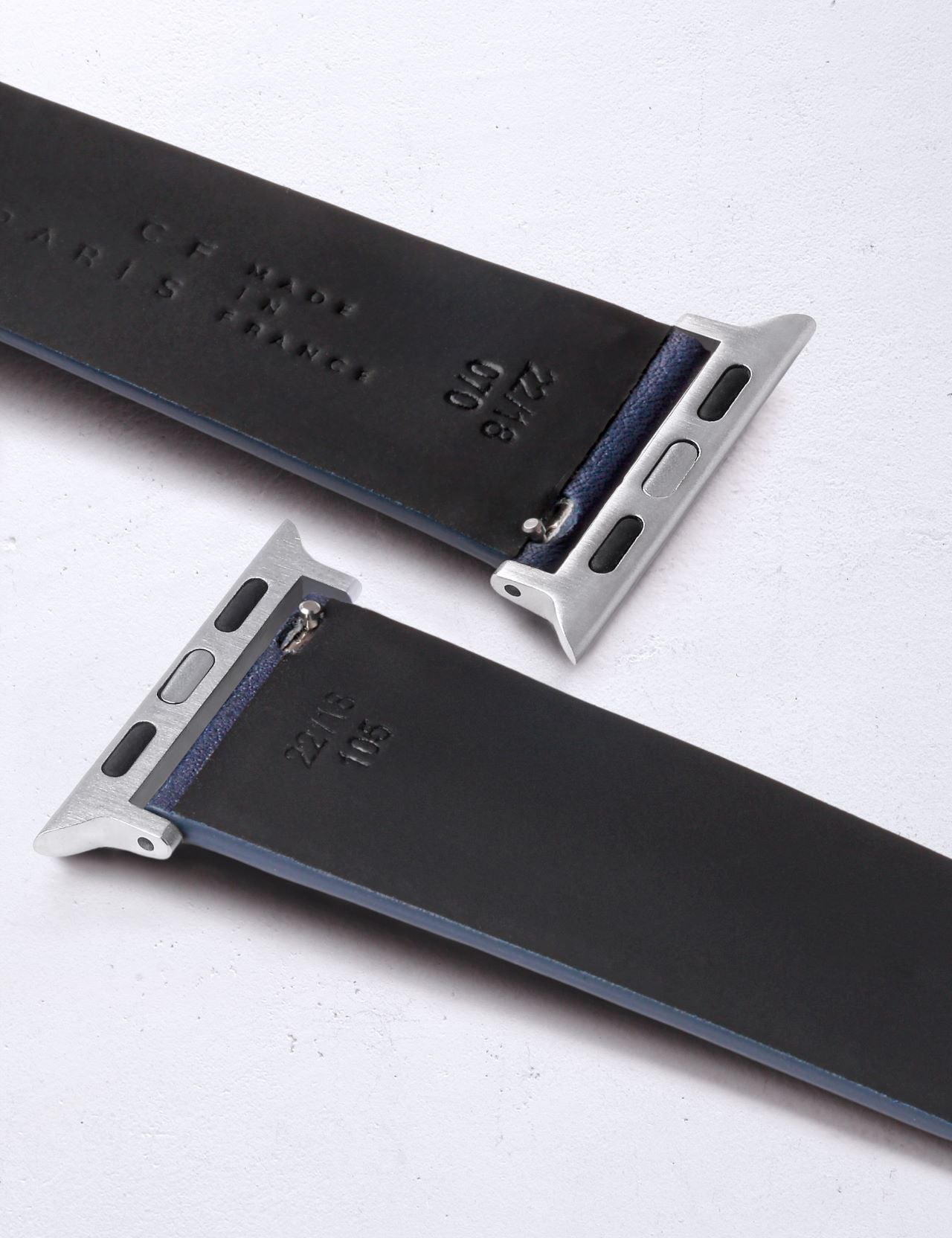 「アビエ®」は小さなツメ付きのバネ棒。 アダプターからベルトの付け外しがワンタッチで可能。 胴元幅22mmのカミーユ・フォルネの時計ベルトの付け替えも可能。 アップルウォッチにも付け替えの楽しさを。 ヴォーリスはなめらかな絹のような表面と心地良い肌触りが最大の特徴。 裏には牛革にラバーコーティングした「カウチュ」アンチスウェットモデルを採用。 汗が気になる季節はもちろん、通年でのご使用もおすすめ。 裏からの汗の浸透を防ぎベルトの傷みを軽減させるよう、表に縫い目を出さないひと工夫も。