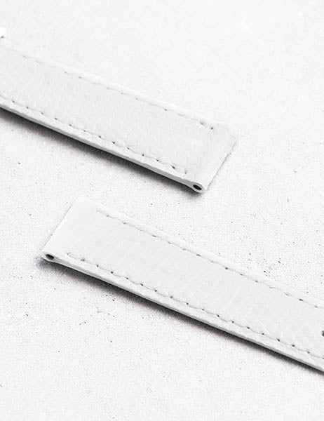 CAMILLE FOURNETの腕時計ベルトすべてに、ワンタッチで取り付けできる「アビエ」を導入しています。工具を使わずにベルト交換(お取替え)ができます。※お取り付けができない時計もございますので仕様などご確認ください。洋服やシーンに合わせてお好みの一本をどうぞお選びください。エキゾチックレザー(アリゲーター・リザード)や牛革やカーフ素材は、伝統的な製法・技術で製作されAppleWatch®専用に設計されたストラップコレクションです。ストラップには着脱が可能なインサートを付きで、美錠カラーと同色のインサートをお取付けしております。 シルバー / ゴールド /ブラックの3色からお選びいただけます。