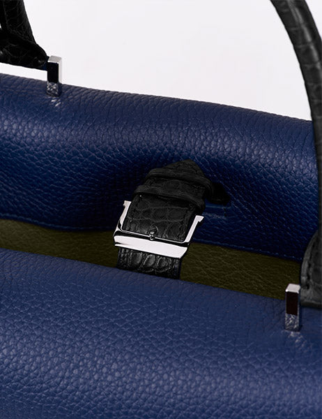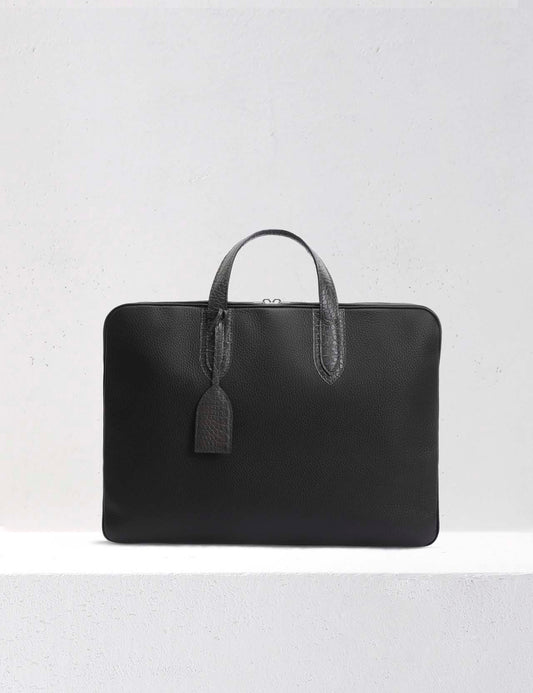 洗練された雰囲気を醸し出すカミーユ・フォルネのメンズ用ビジネスバッグ。アリゲーターを一部使用したデザインは、ブランドのアイコニックに。書類や電子機器などを収納ができ、小分けにポケットやコンパートメントなど、巧みにデザインされた内装も魅力です。