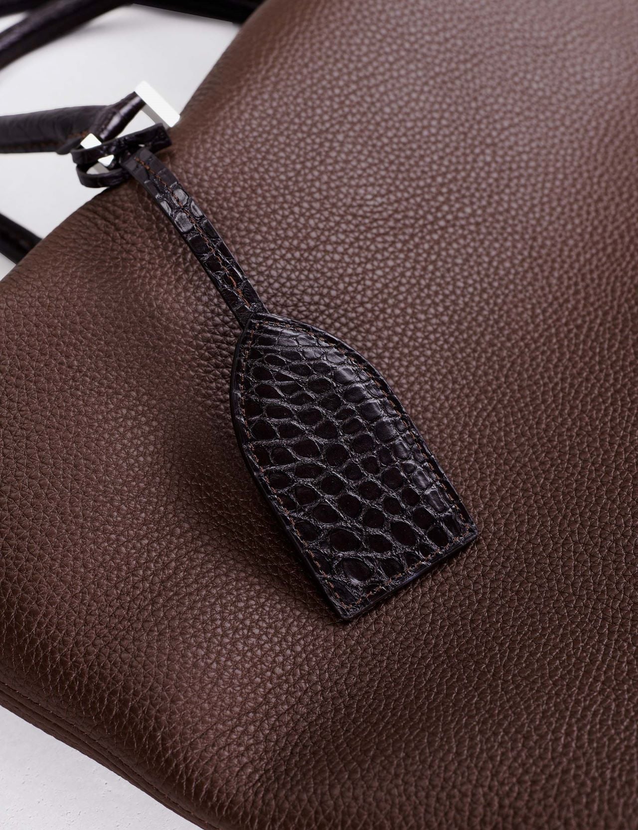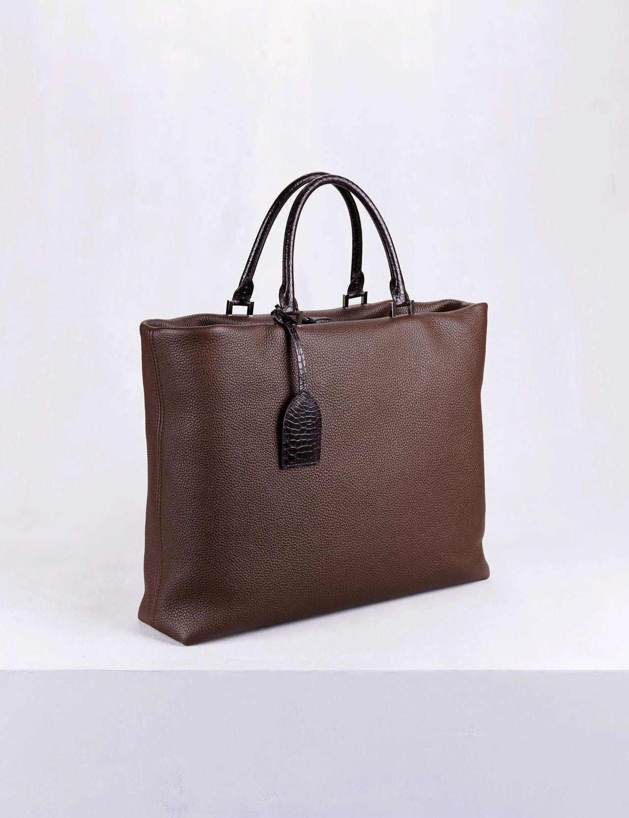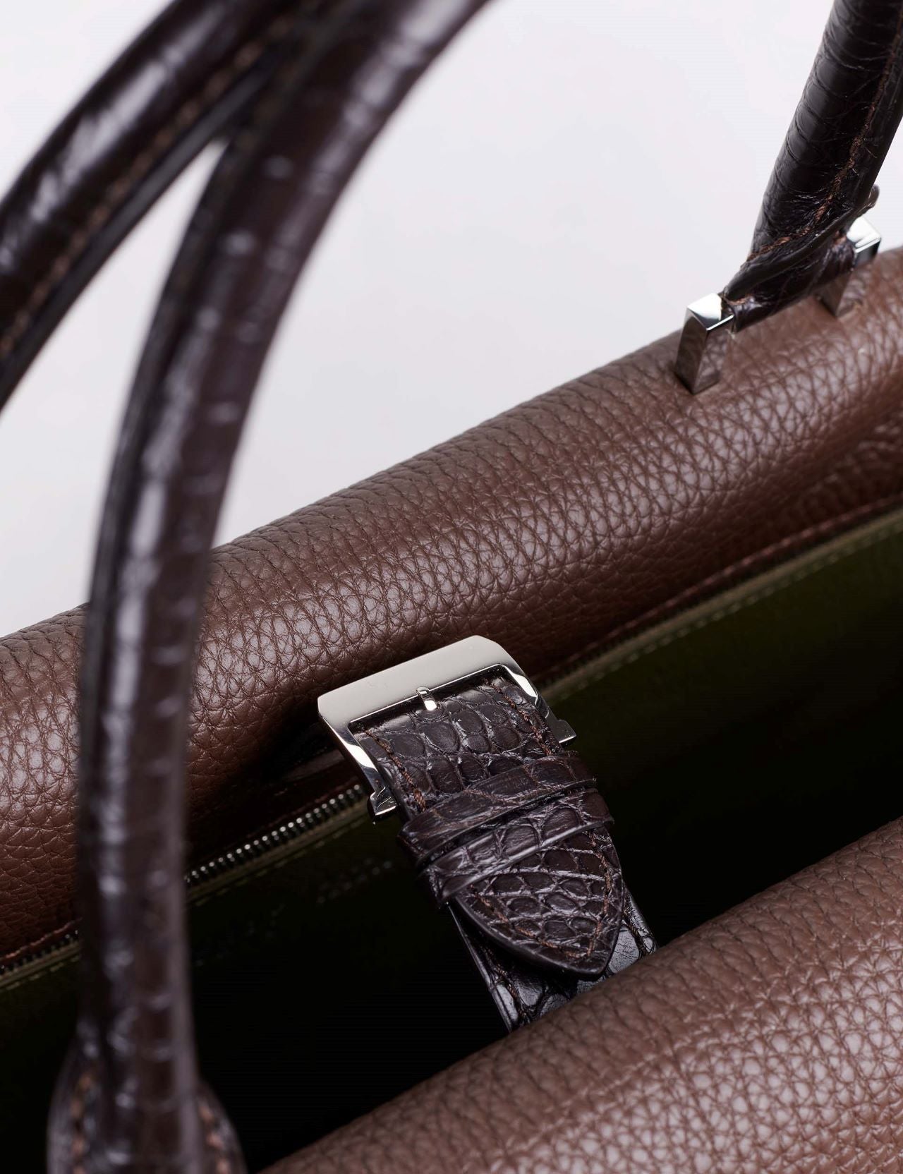 ビジネスシーンに最適なシックで実用的なアイテム。 アリゲーターを使用したハンドルとチャームが特別感を演出。