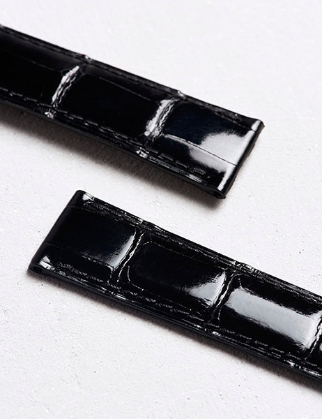 アリゲ-タ-シャイニー竹斑 手縫い ブラック