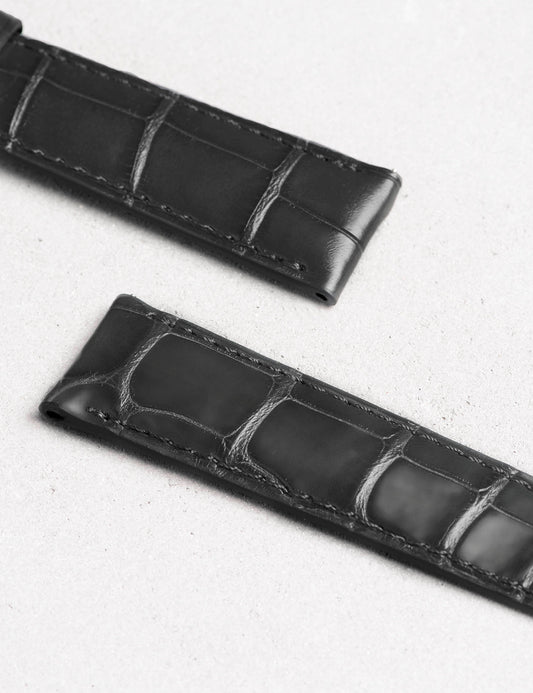 アップルウォッチ用ストラップ アリゲーターシャイニー竹斑 キャビアブラック