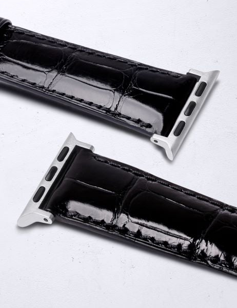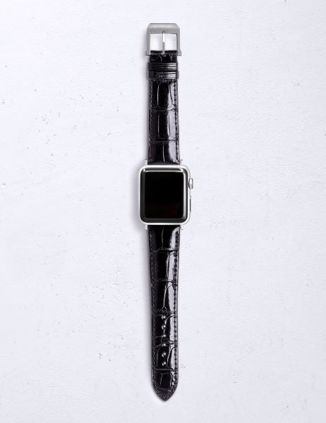 アップルウォッチ用ストラップ アリゲーターシャイニー竹斑 キャビアブラック